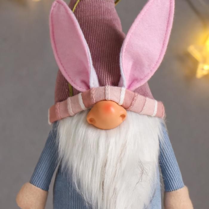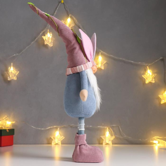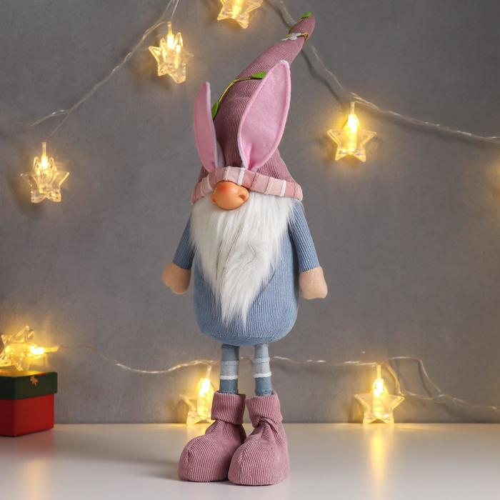 Кукла интерьерная "Дед Мороз в розово-голубом наряде, в колпаке с ушками" 48х10х13 см
