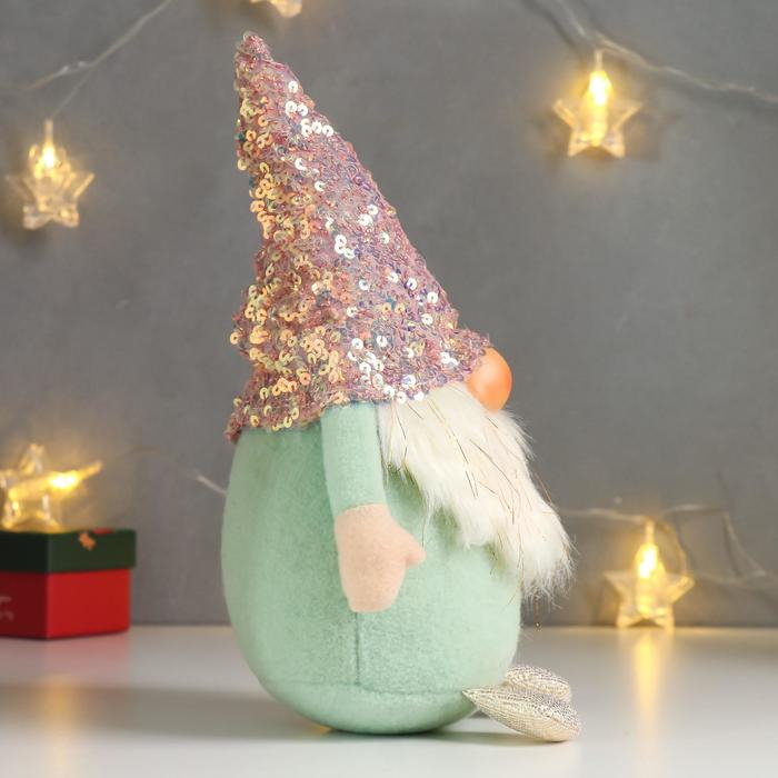 Кукла интерьерная "Дед Мороз в розовом колпаке с пайетками" 33х14х17 см