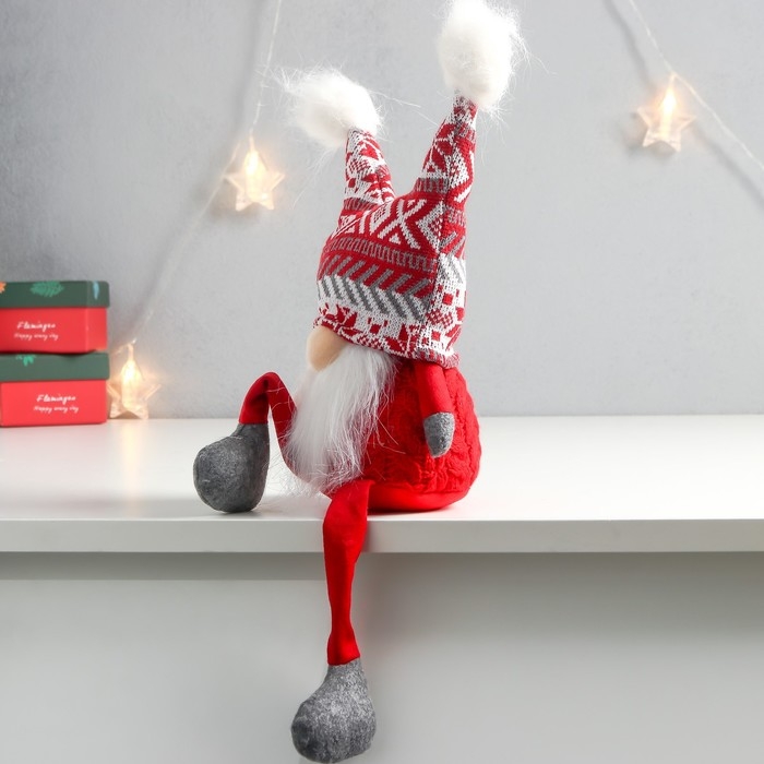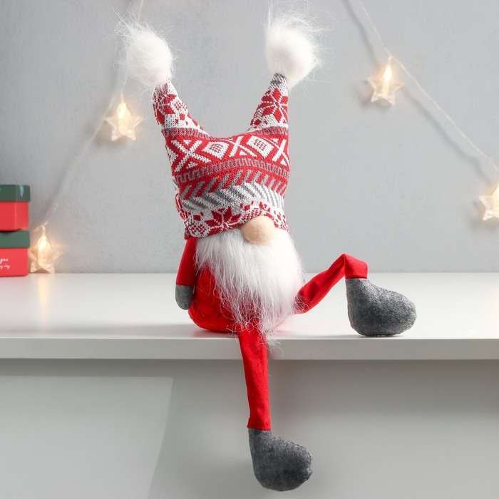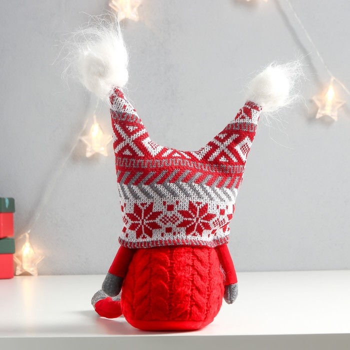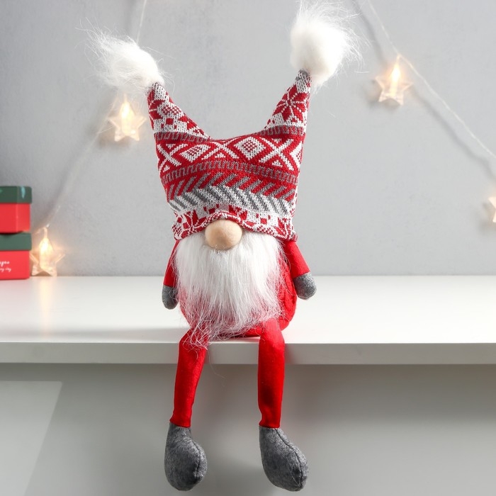 Кукла интерьерная "Дед Мороз в шапке с красными узорами, с бомбошками" 41х13х10 см