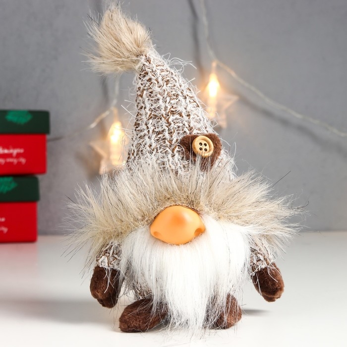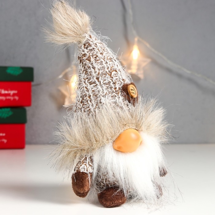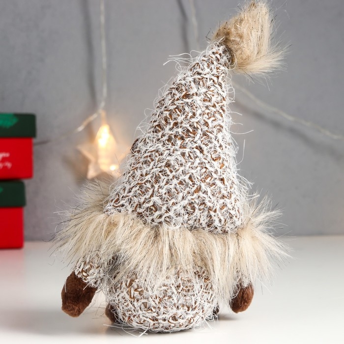 Кукла интерьерная "Дед Мороз в вязаном колпаке с мехом" 16х9х7 см