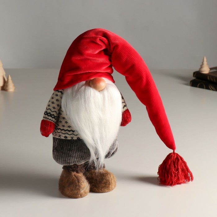Кукла интерьерная "Дедушка Мороз в длинном колпаке с кисточкой" 24,5 см