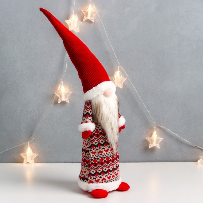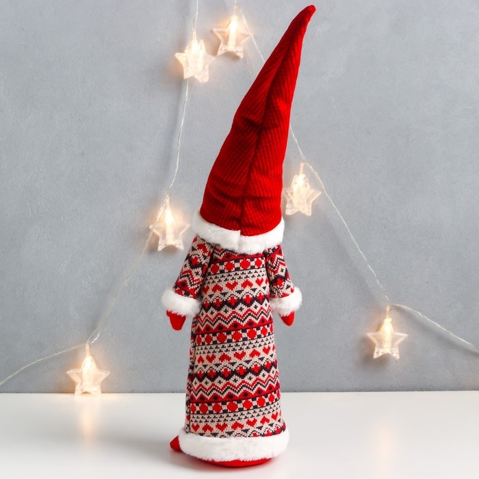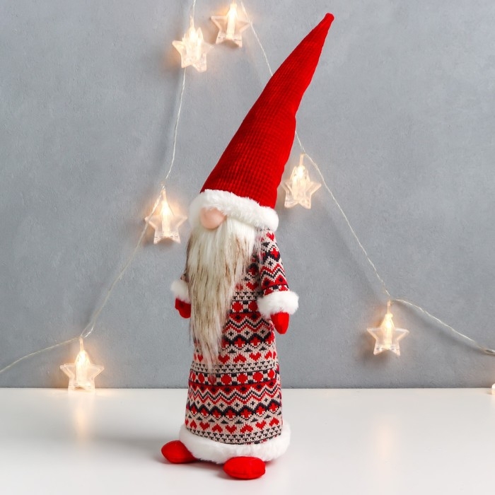 Кукла интерьерная "Дедушка Мороз в кафтане со скандинавскими узорами" 55х12х11 см
