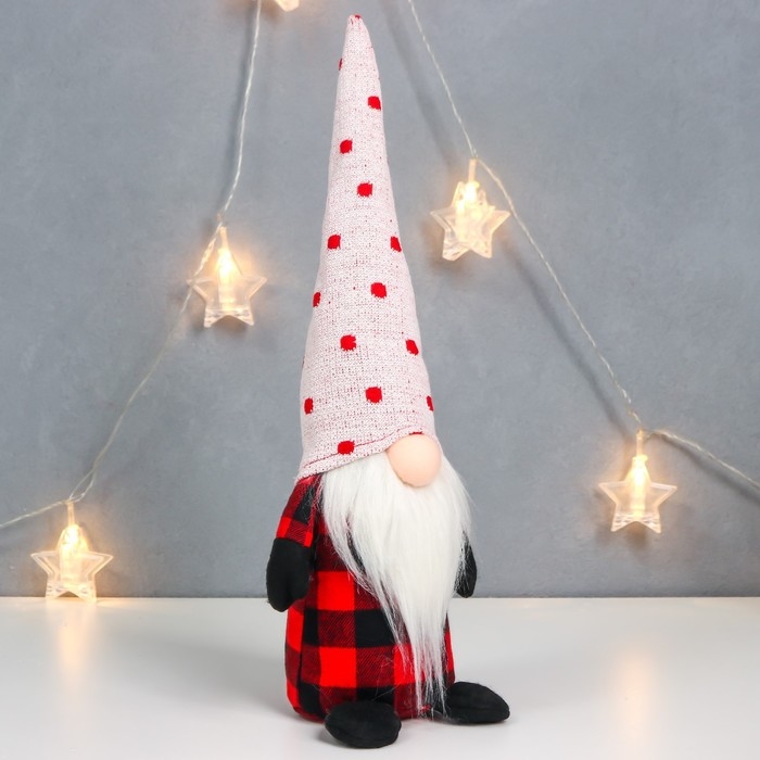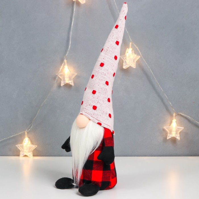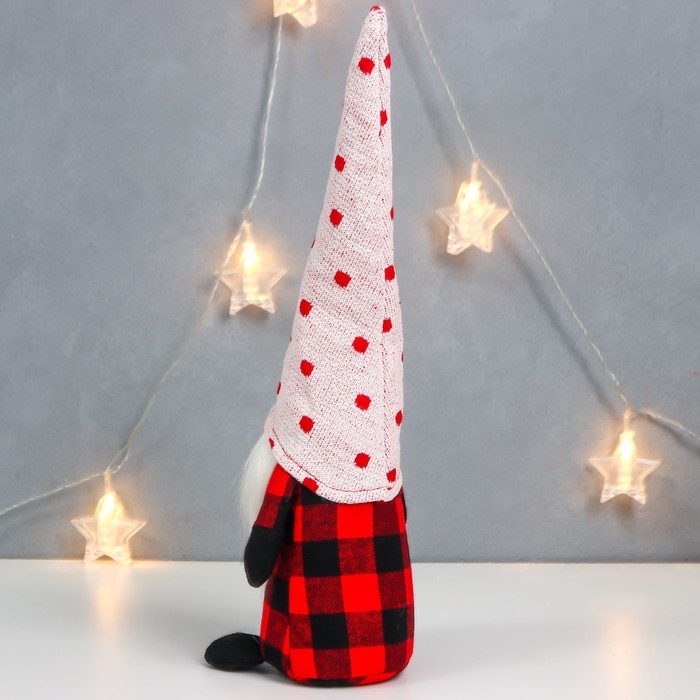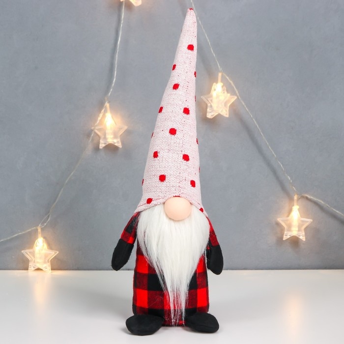 Кукла интерьерная "Дедушка Мороз в клетчатом кафтане, колпак в горох" 40х15х8 см