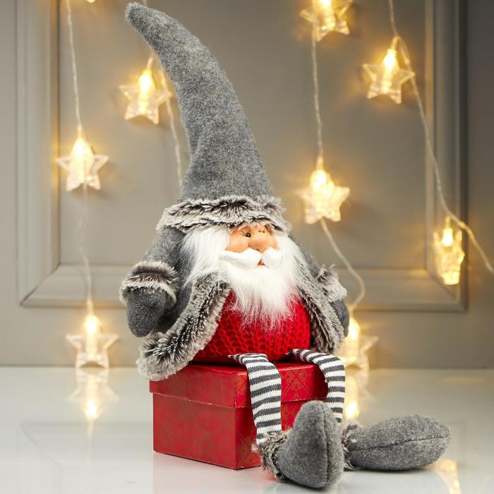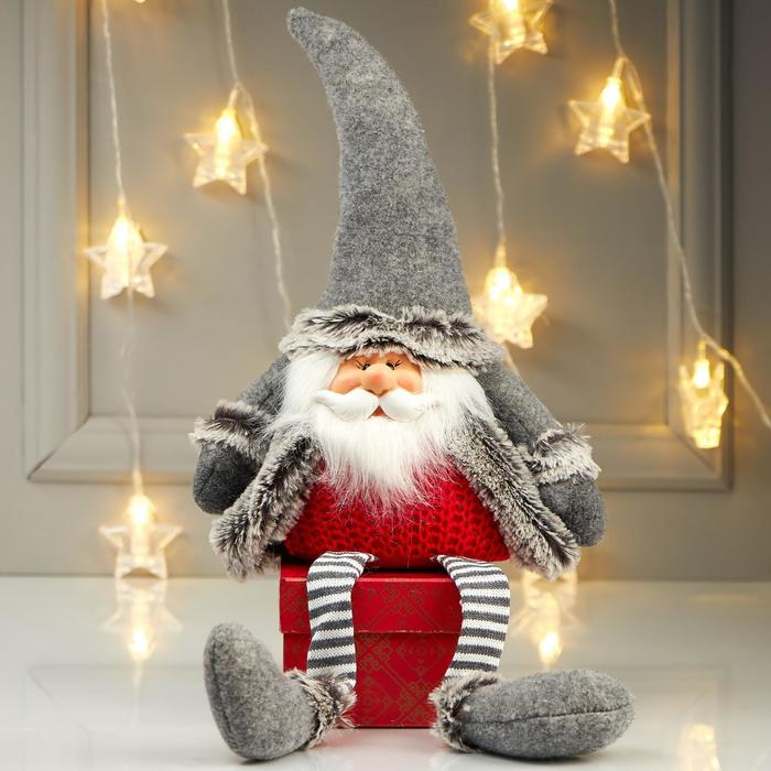 Кукла интерьерная "Дедушка Мороз в полосатых гетрах" 50х10х15 см