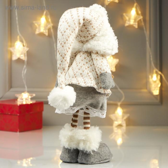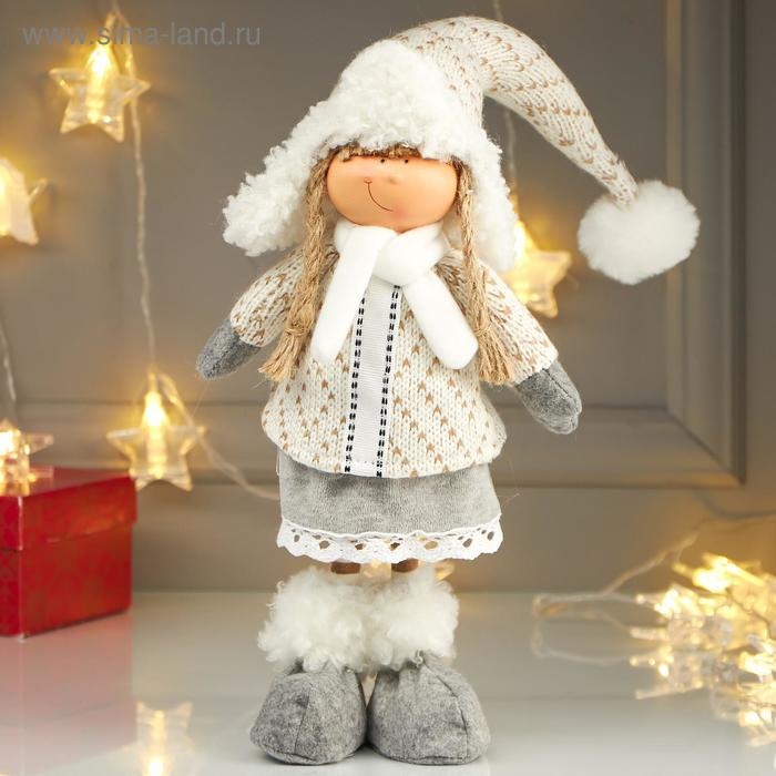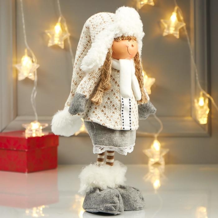 Кукла интерьерная "Девочка в зимнем наряде и в шапке-ушанке" 52х10х15 см