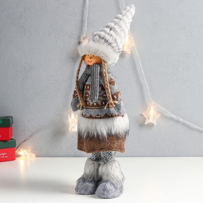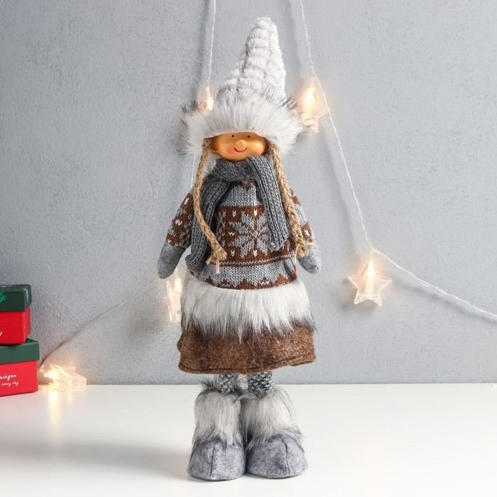 Кукла интерьерная "Девочка в зимнем наряде со снежинками" 45х16х9 см