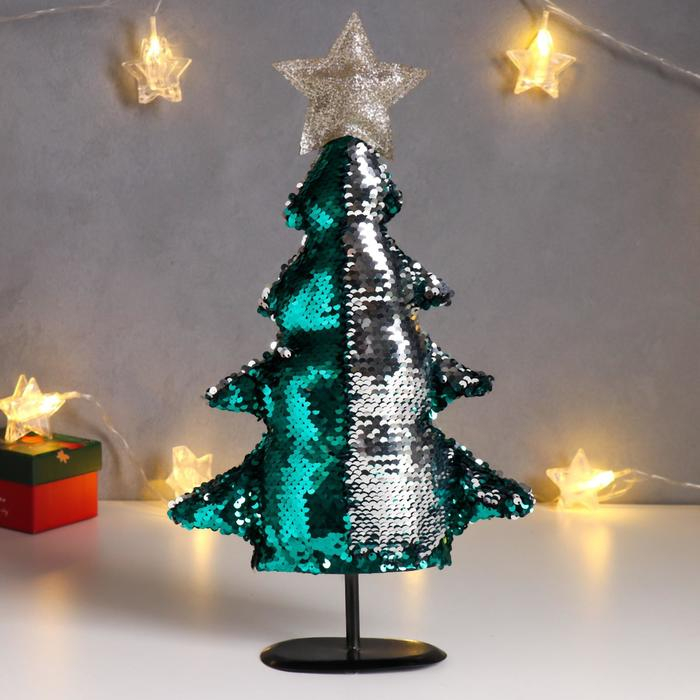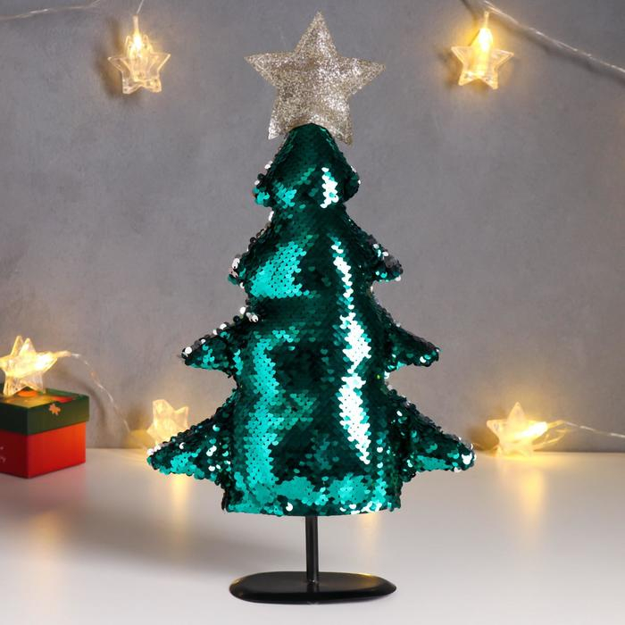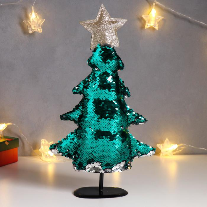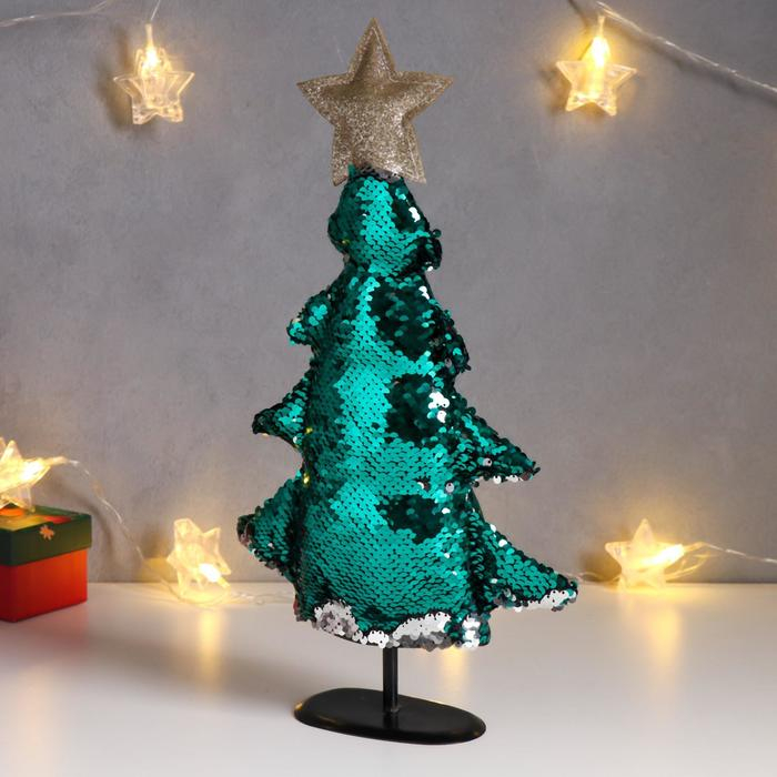 Кукла интерьерная "Ёлочка с серебристо-зелёными пайетками, с золотой звездой" 40х19х24 см