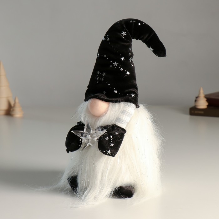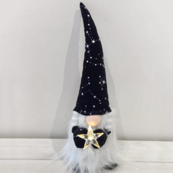 Кукла интерьерная "Гном в чёрном колпаке со звездами, со звёздочкой в руках" 36 см