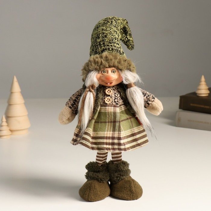 Кукла интерьерная "Кикиморка в зелёном наряде в колпаке" 32 см