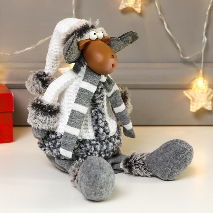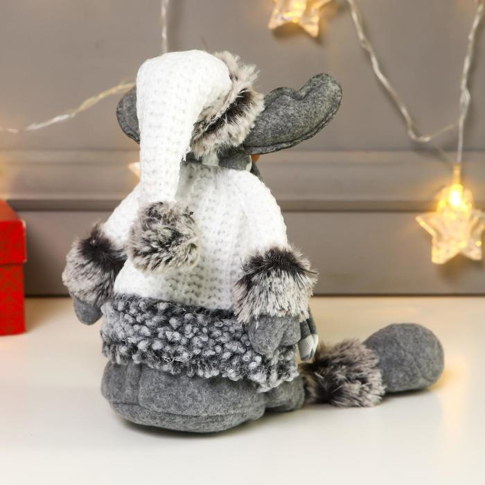 Кукла интерьерная "Лосик в белой шубке и колпаке" 34 см