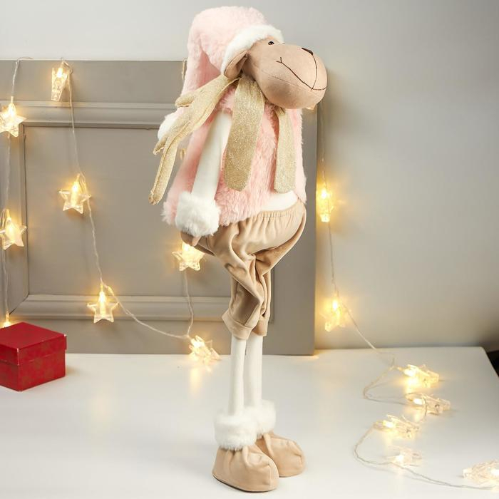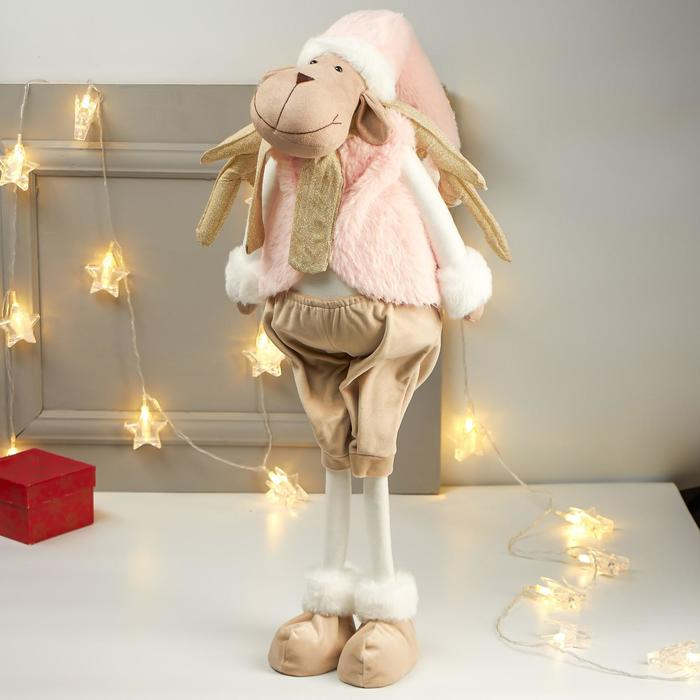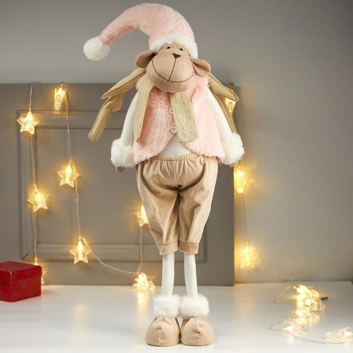 Кукла интерьерная "Лосик в розовом меховом жилете" 85х15х27 см