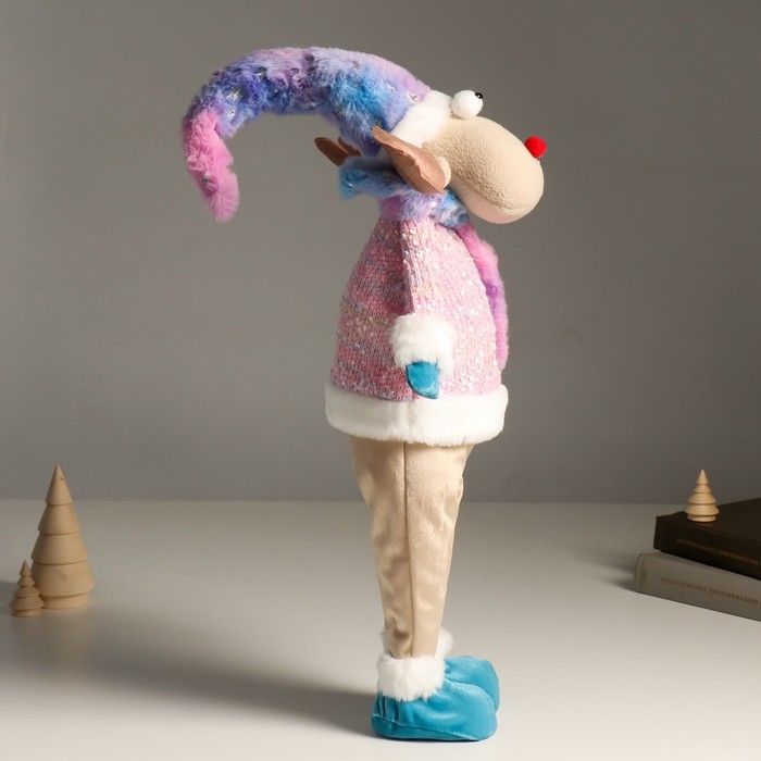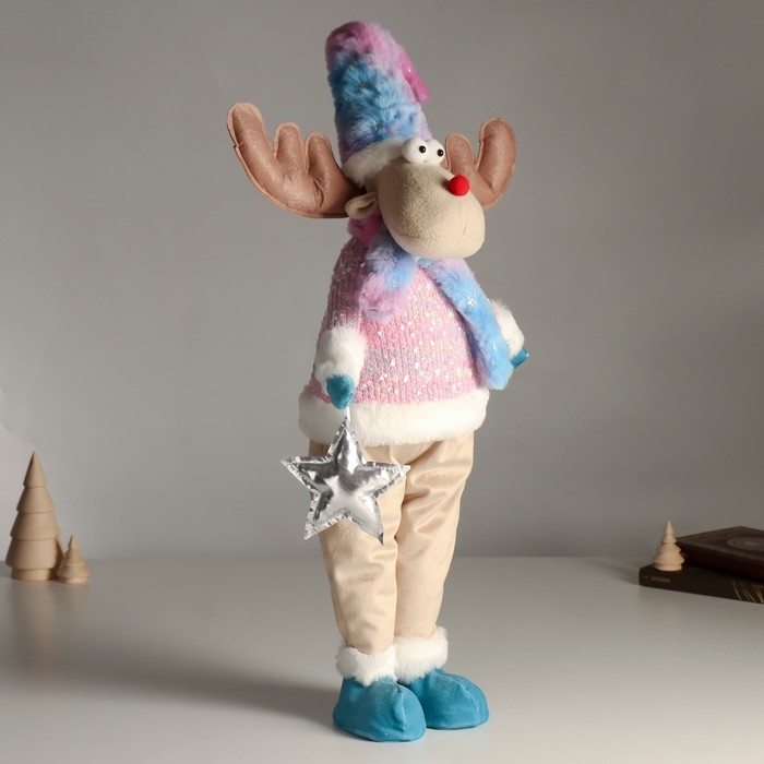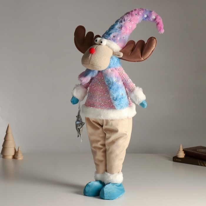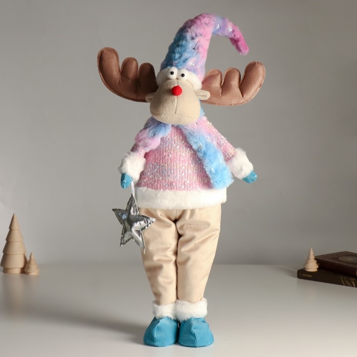 Кукла интерьерная "Лосик в розовом свитере с мехом и голубом колпаке, со звёздочкой" 61,5 см 94880