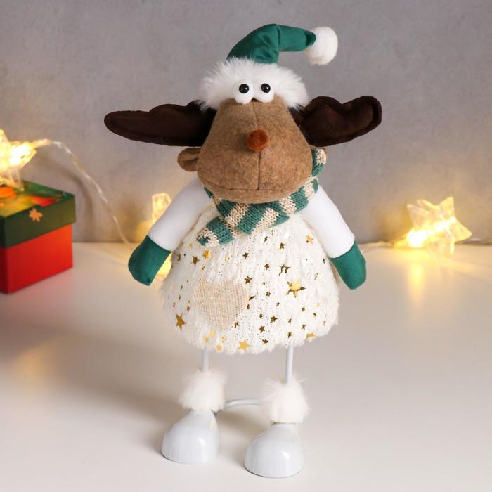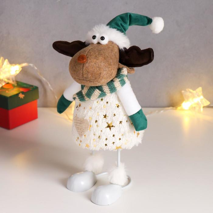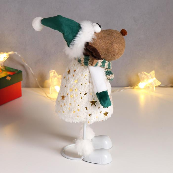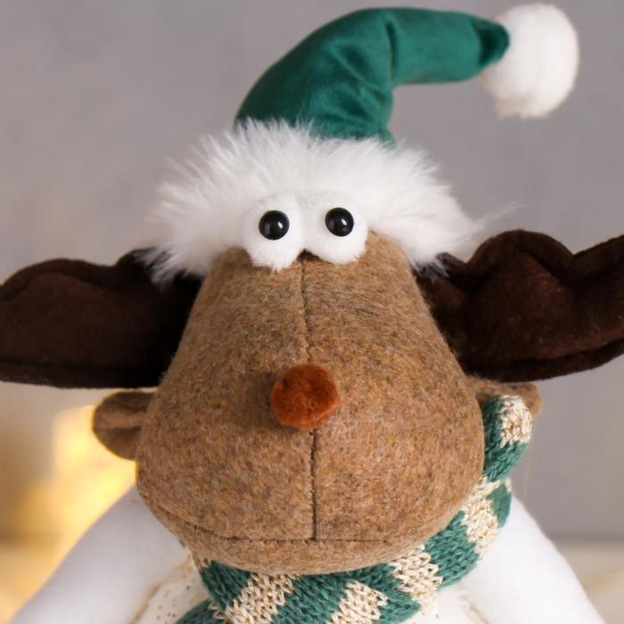 Кукла интерьерная "Лосик в зелёном колпаке, и белом наряде с золотыми узорами" 30х10х14 см