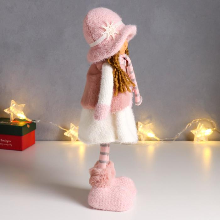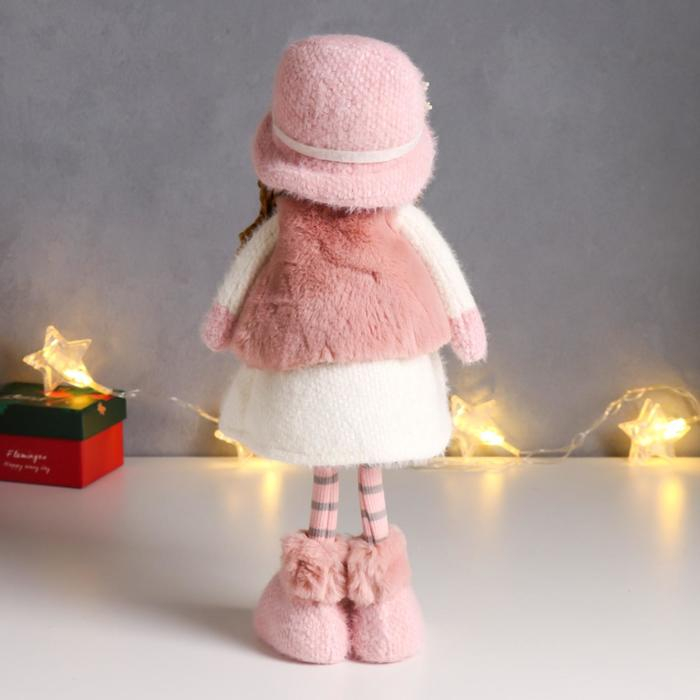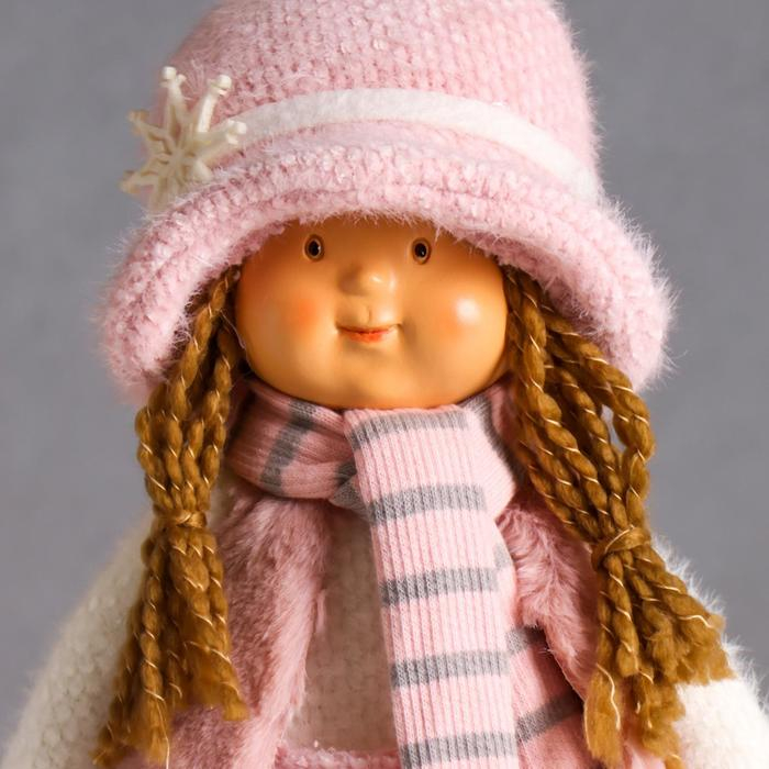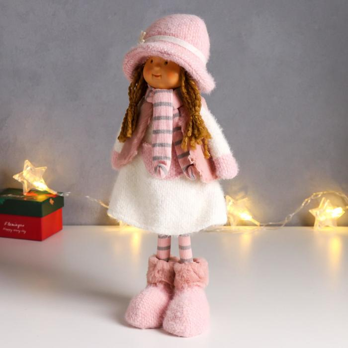Кукла интерьерная "Малышка с хвостиками, в вязаном бело-розовом наряде и шляпке" 36,5 см