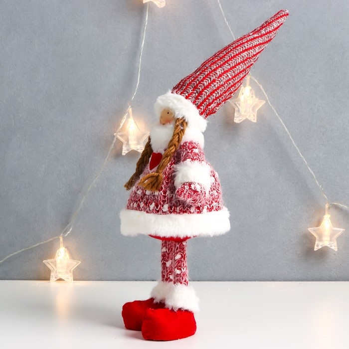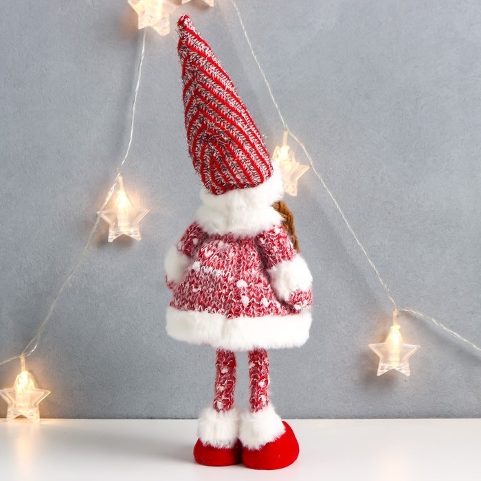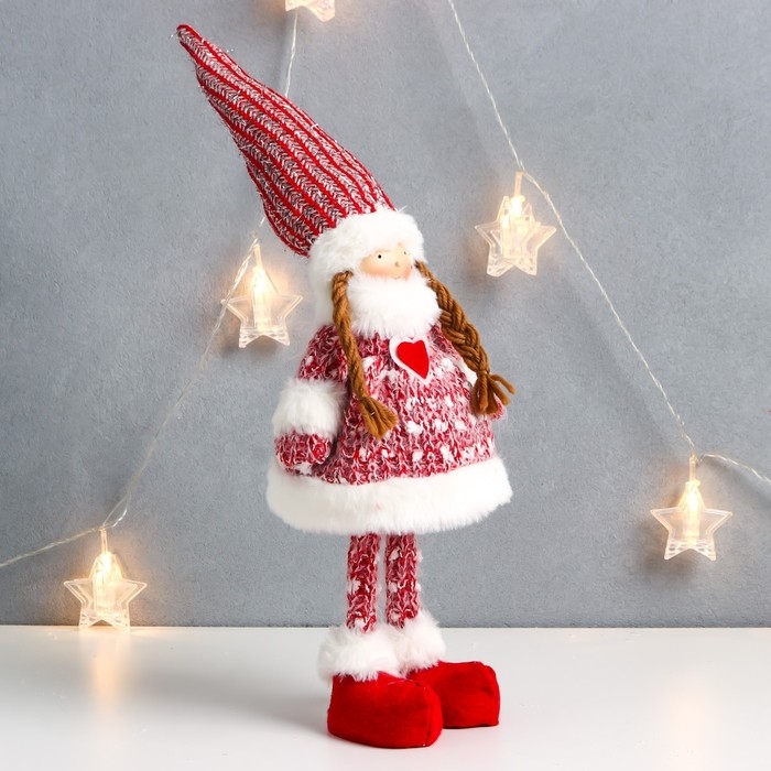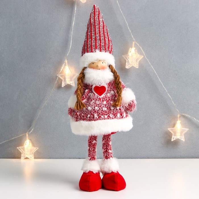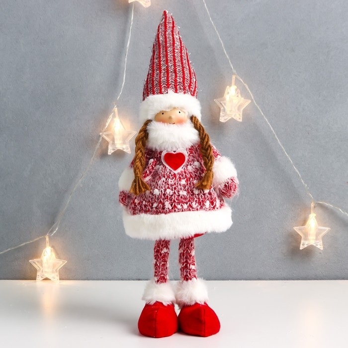 Кукла интерьерная "Малышка Тося в красном вязаном платье с сердечком" 45х18х11 см