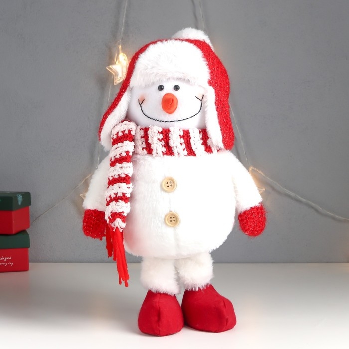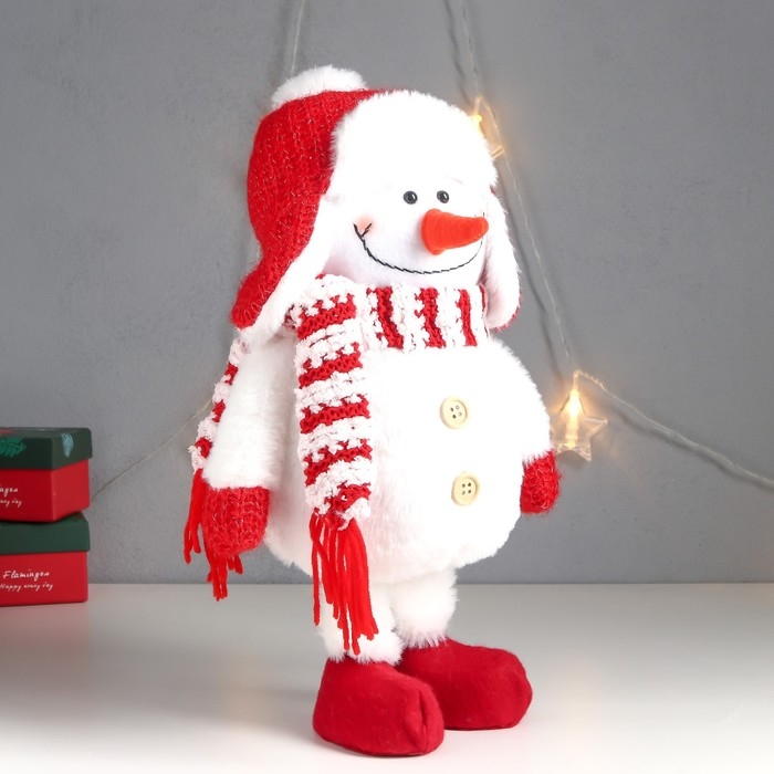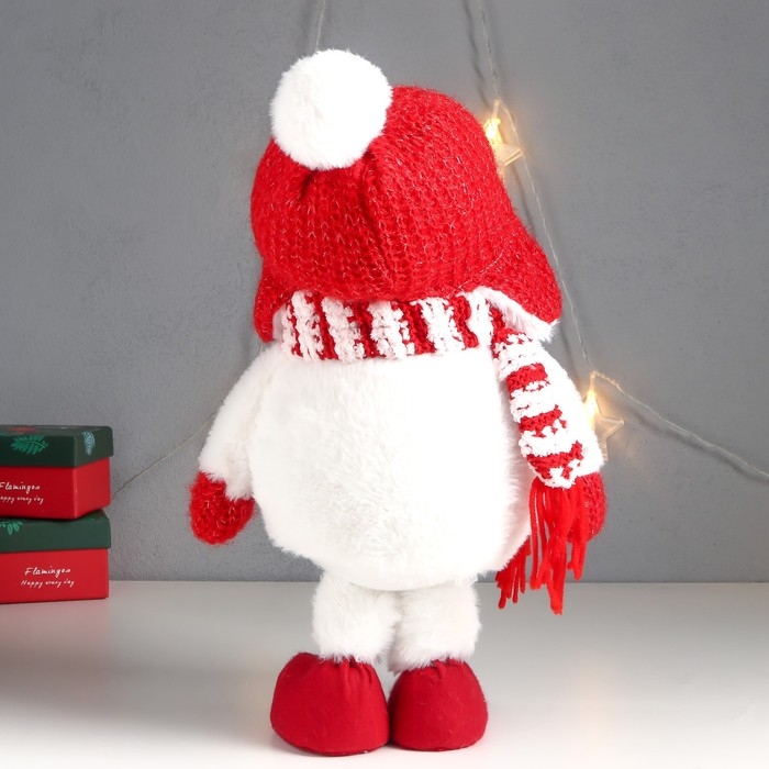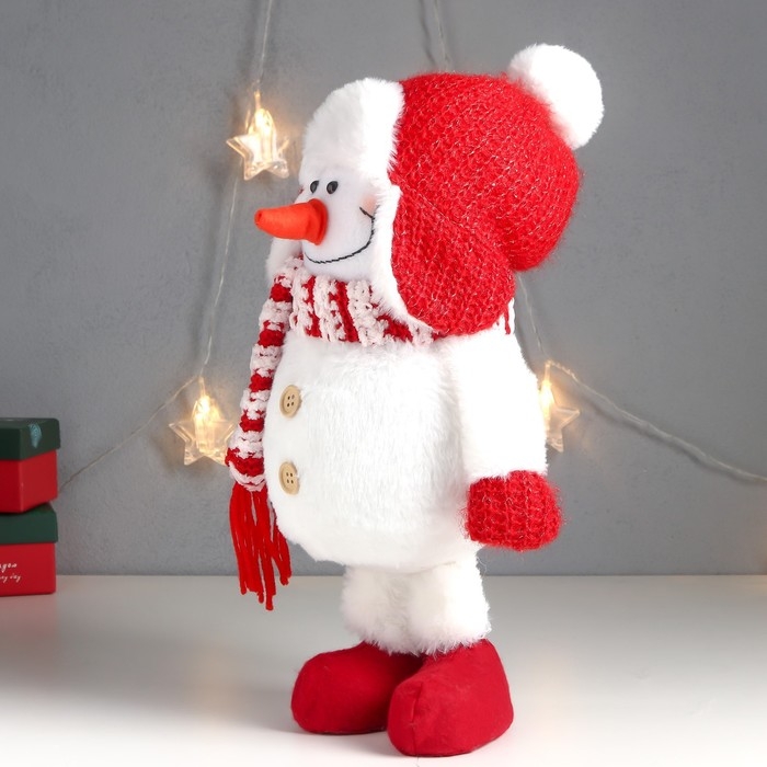 Кукла интерьерная "Снеговик в красной шапке-ушанке с бомбошкой" 40х17х16 см