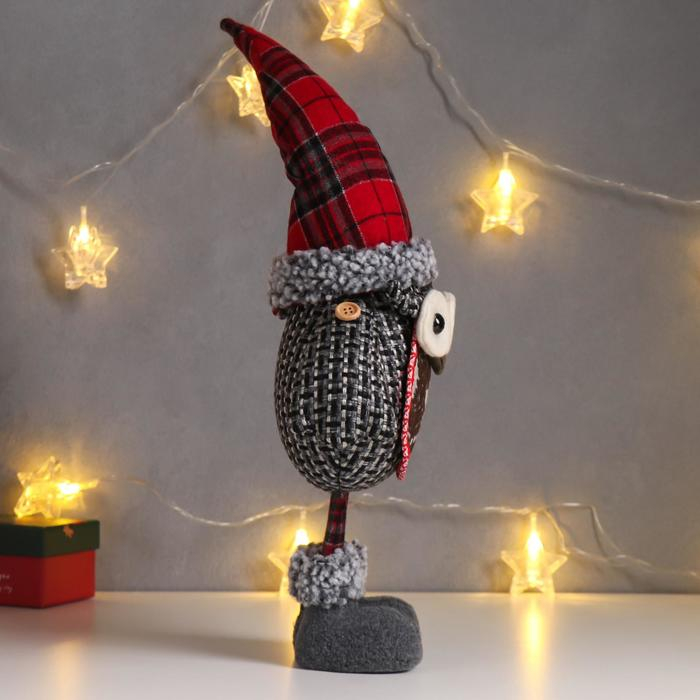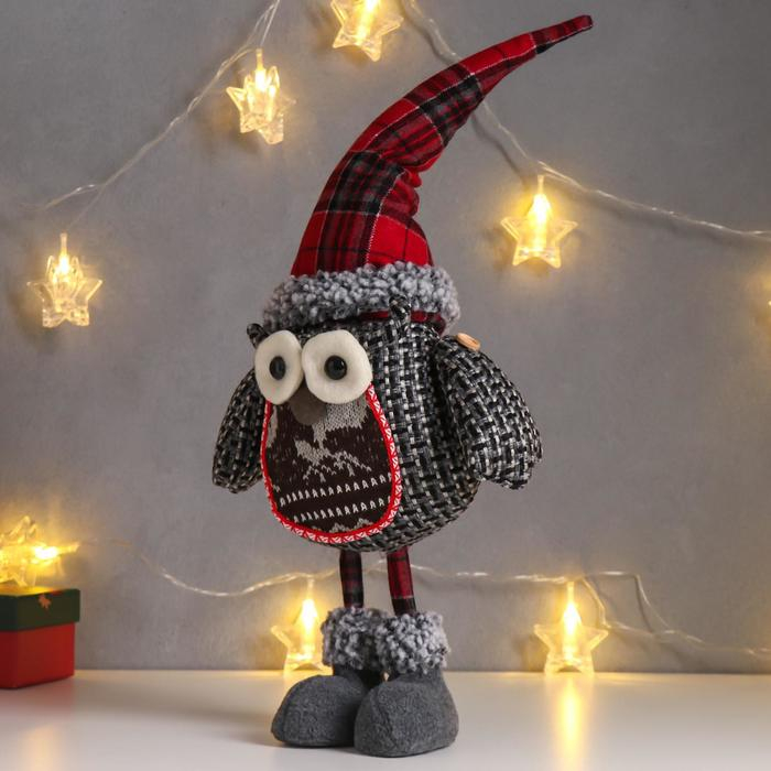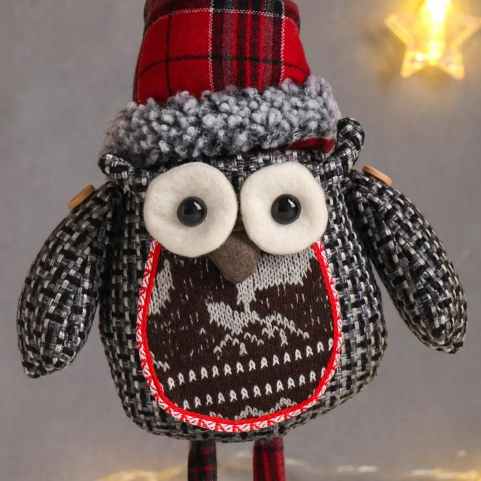 Кукла интерьерная "Совёнок в клетчатом колпаке и оленями на пузике" 49 см