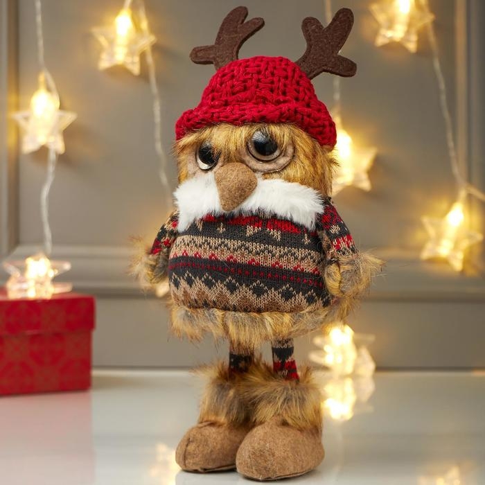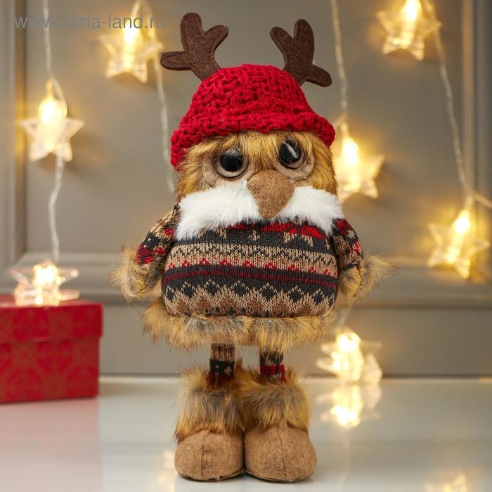 Кукла интерьерная "Совушка в шапочке с рожками и в платье" 26х10х12 см