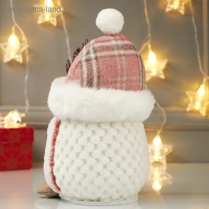 Кукла интерьерная свет "Совушка в розовой шапке с оленьими рожками" 25х15х15 см