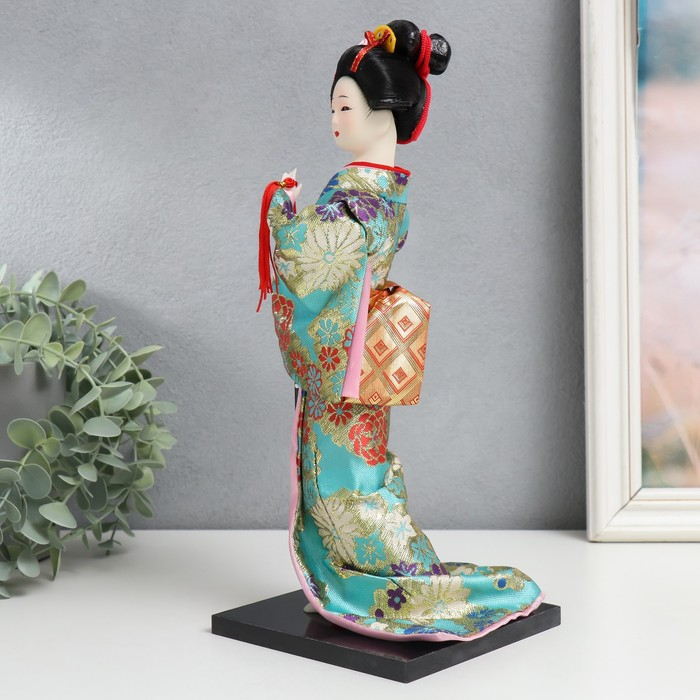 Кукла коллекционная "Гейша в бирюзовом кимоно с цветами" 32х13х13 см