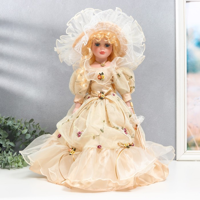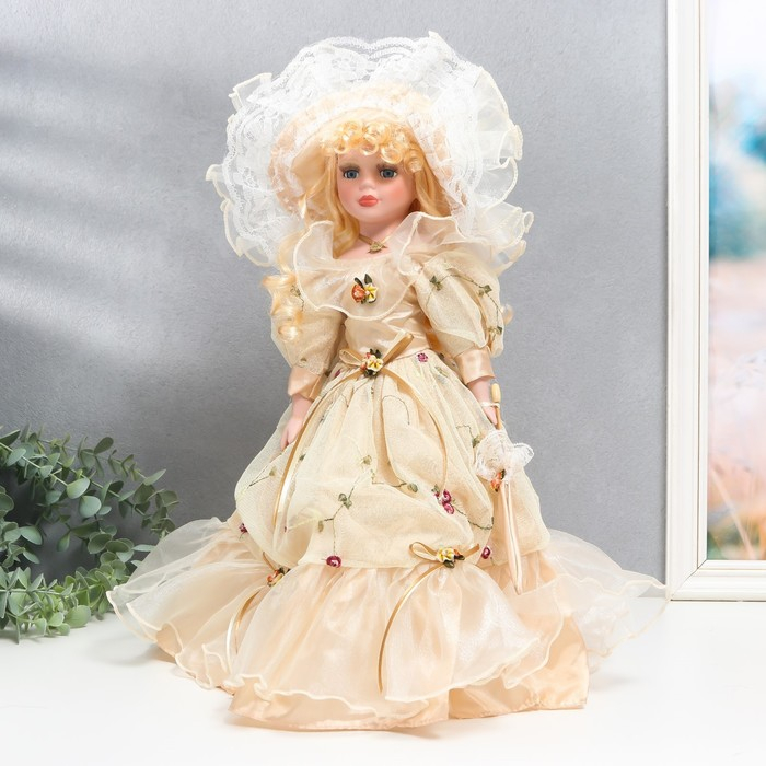 Кукла коллекционная керамика "Евгения в сливочном платье" 40 см