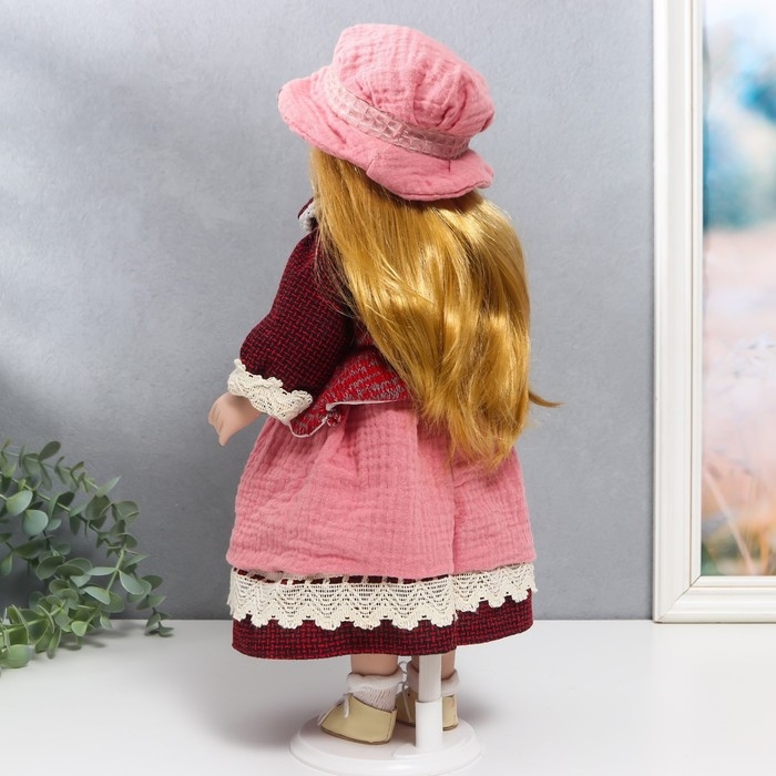 Кукла коллекционная керамика "Нина в розовом платье и бордовом жакете" 40 см