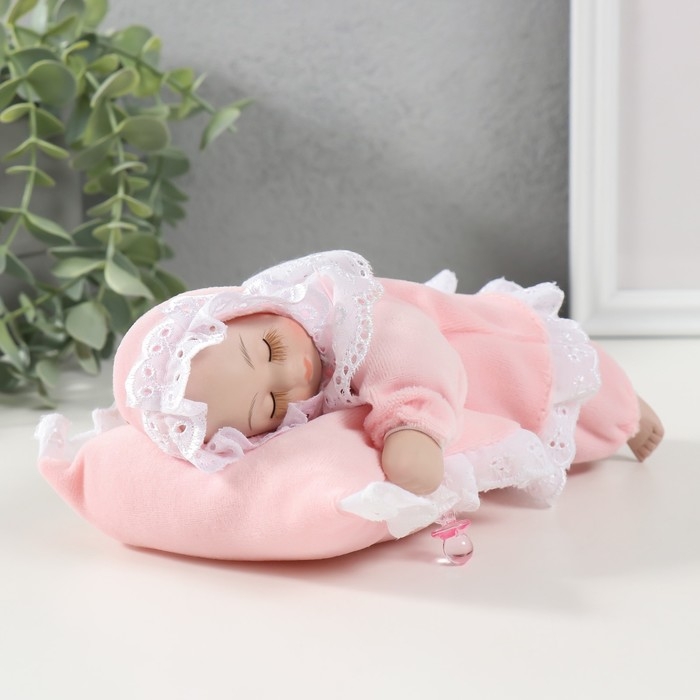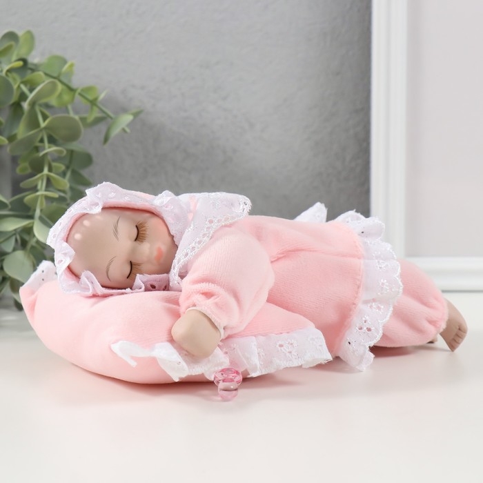 Кукла музыкальная механическая "Малыш спящий на подушке" розовый, двигается 13,5х19,5х8 см 104624