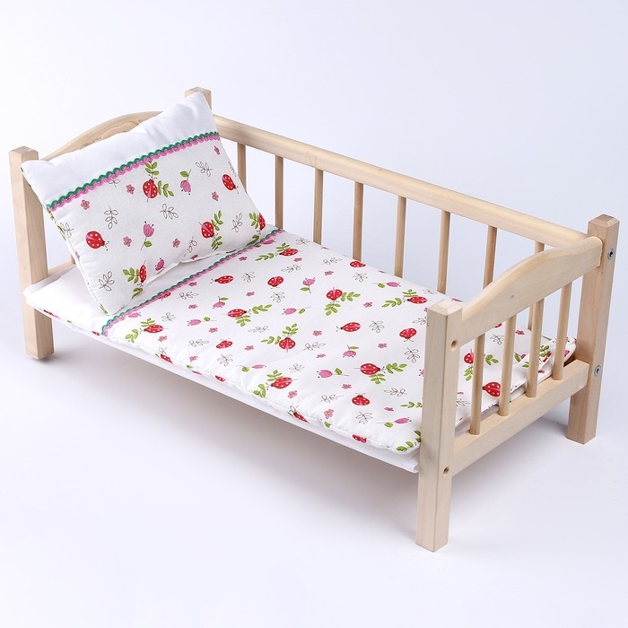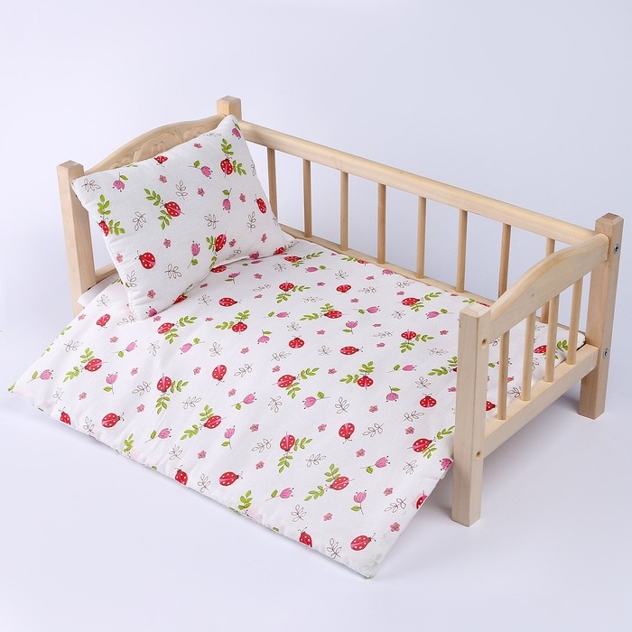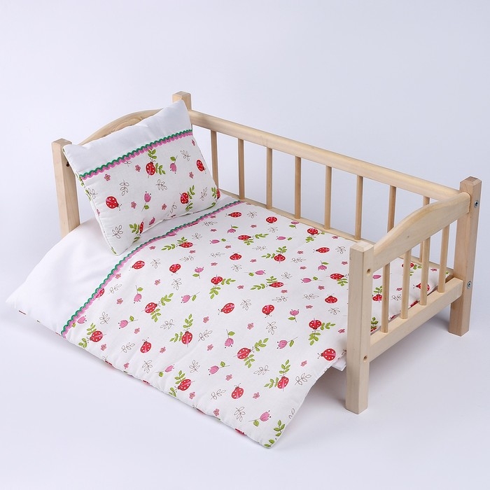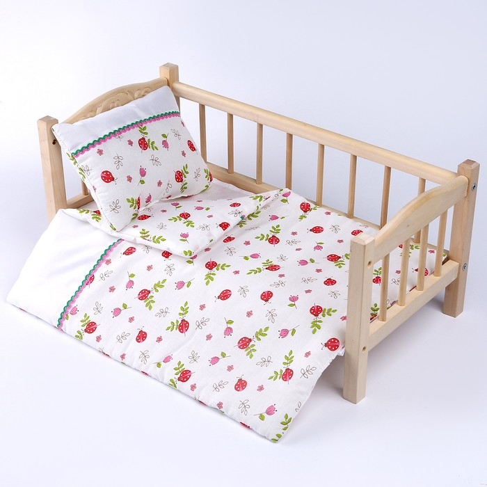 Кукольное постельное «Божьи коровки», х/б: простынь, одеяло 46 × 36 см, подушка 23 × 19 см