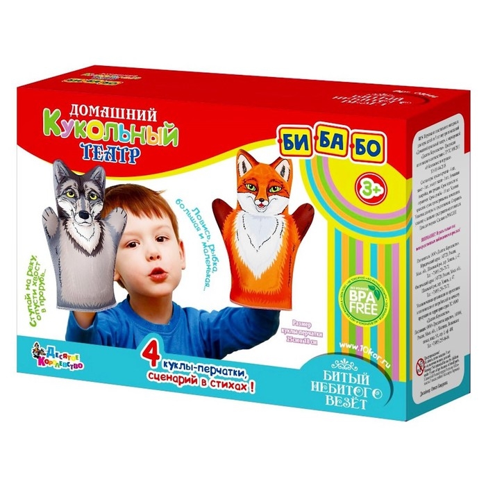 Кукольный театр «Битый небитого везёт», 4 куклы-перчатки, сценарий в стихах