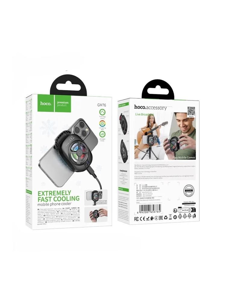 hoco GM76 - это система охлаждения разработанная специально для смартфонов, благодаря данному кулеру ваш смартфон не будет перегреваться при сильных нагрузках, к примеру когда вы играете в игры.