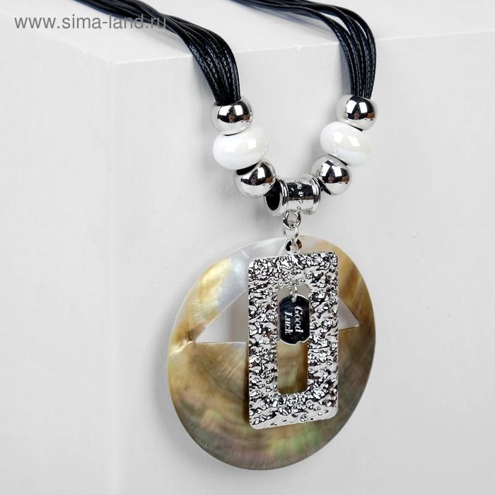 Кулон на шнурке "Магия" мятый прямоугольник с ракушкой, цвет бело-зелёный в серебре, 50см