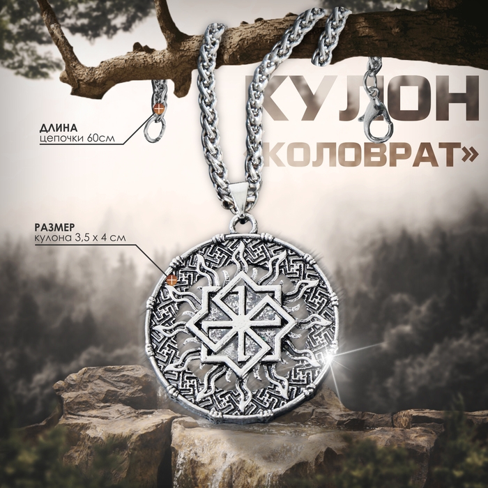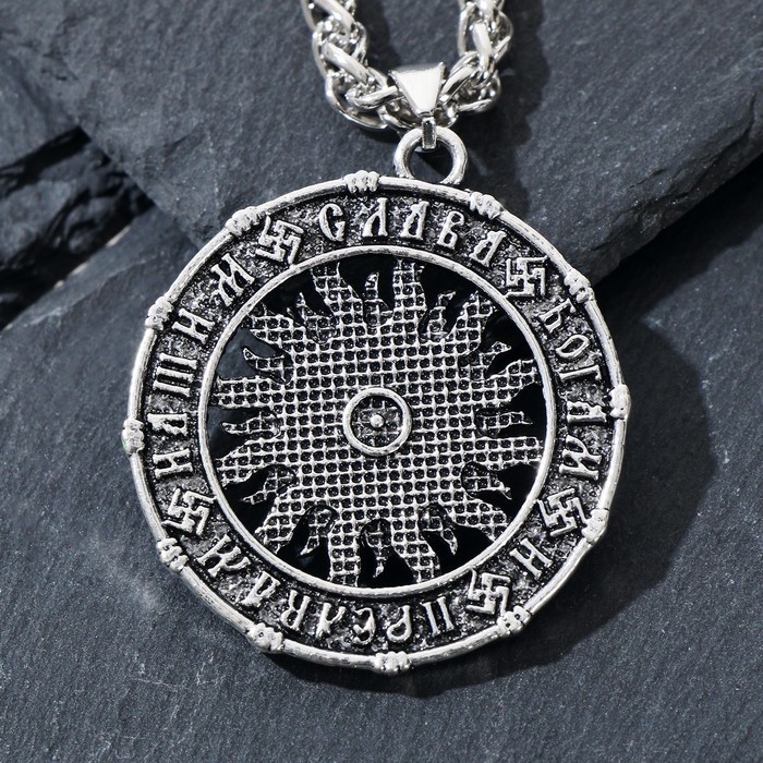 Кулон-оберег «Коловрат» пылающий, цвет чернёное серебро, 60 см