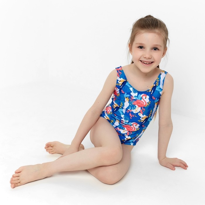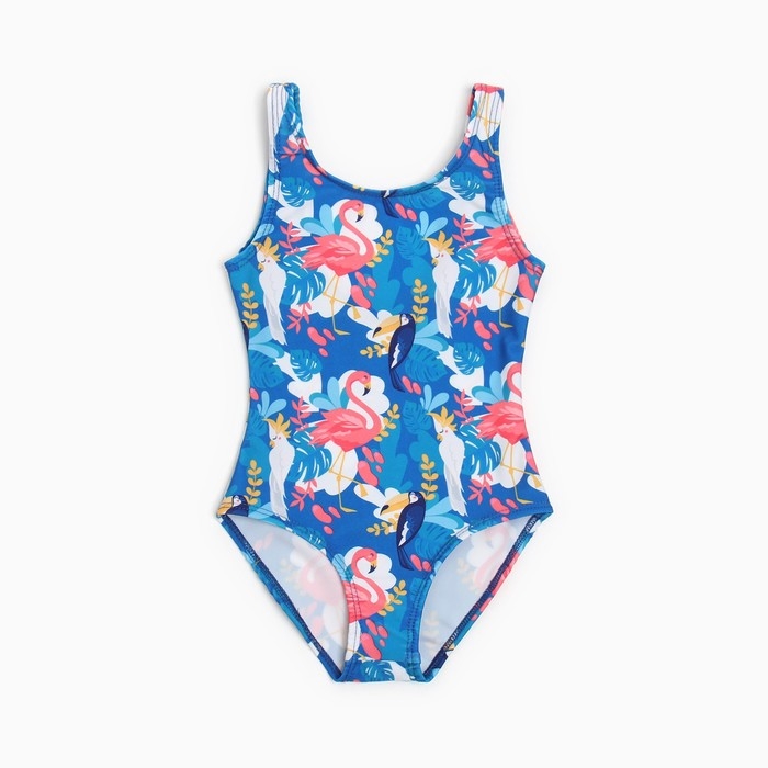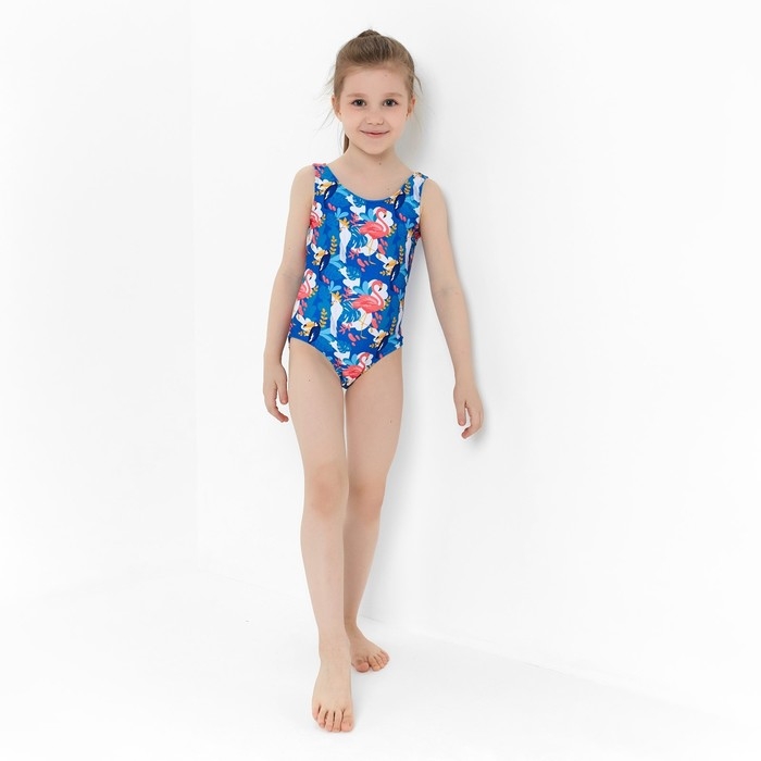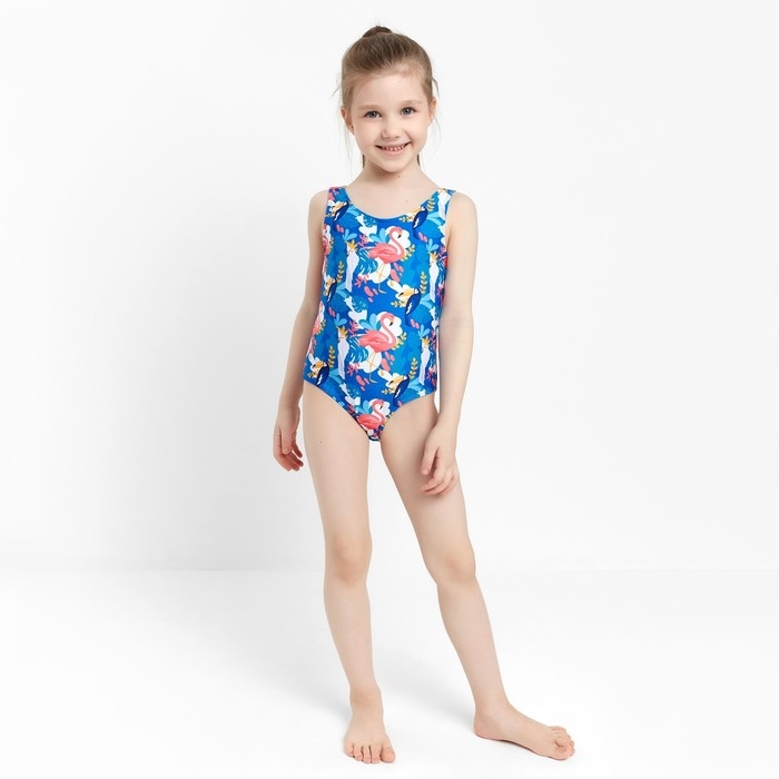 Купальник слитный, цвет синий/фламинго, рост 110 см