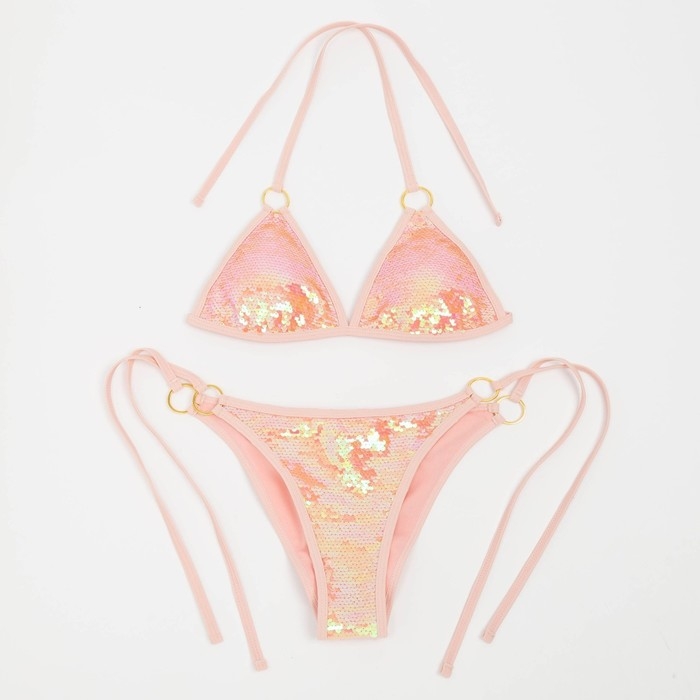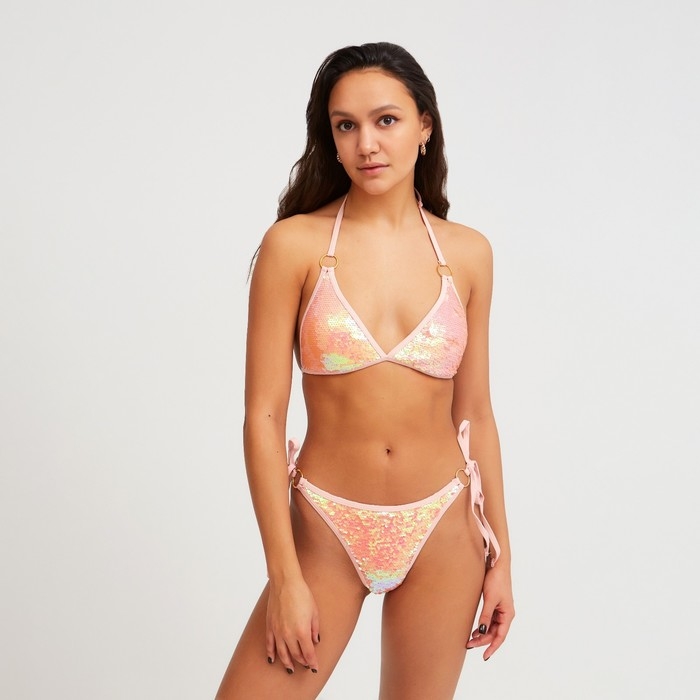 Купальник женский раздельный MINAKU с пайетками цвет розовый, размер 46