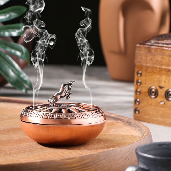Курильница для благовоний "Бык вращает вселенную", 5,5 х 5 см, бронзовый