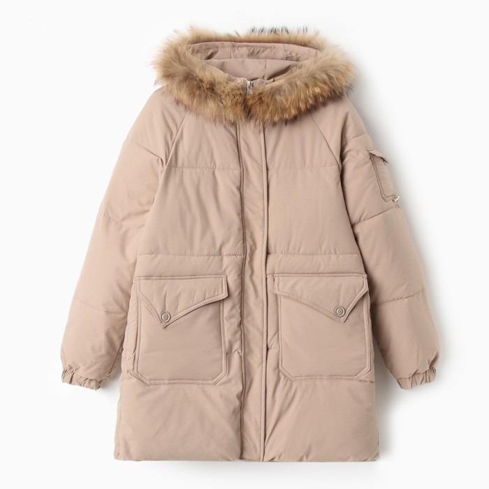 Куртка женская зимняя, цвет бежевый, размер 48