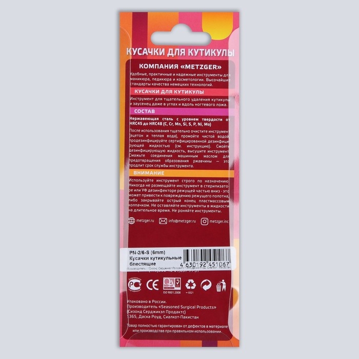 Кусачки имеют индивидуальную блистерную упаковку и силиконовый колпачок. При правильном использовании, дезинфицировании и хранении — инструмент сохраняет отличную заточку долгое время.