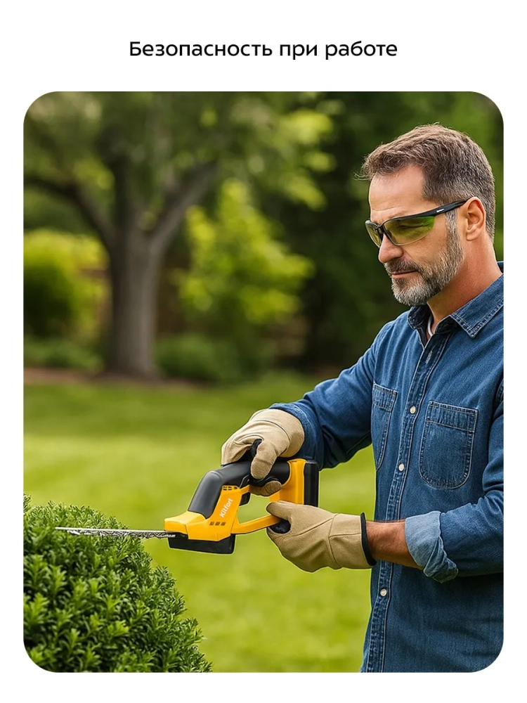 Кусторез прост в использовании, им легко работать за счет небольшого веса. Эргономичная прорезиненная рукоятка удобно лежит в руке и не скользит во время работы. Благодаря высокой скорости лезвий (1350 ход/мин) процесс обрезки кустарника не занимает много времени.