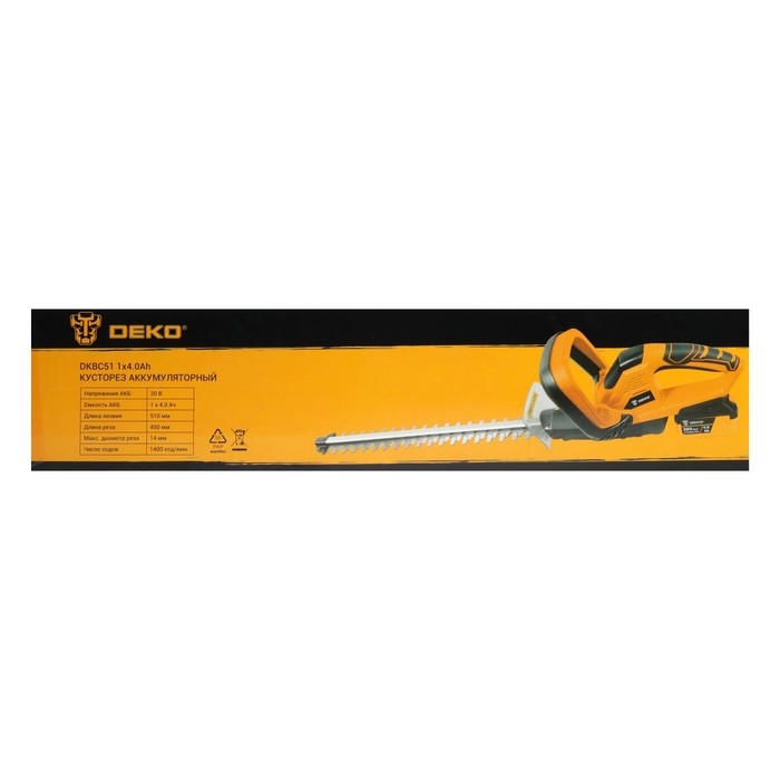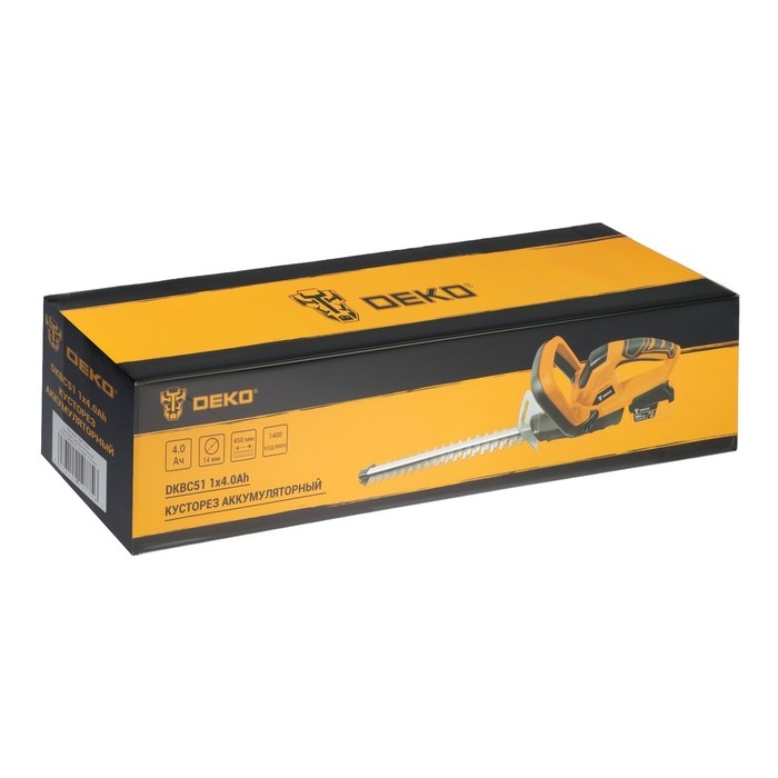 Кусторез аккумуляторный DEKO DKBC51, 20 В, 4 Ач, Li-lon, 510 мм, 1400 ход/мин, рез 14 мм