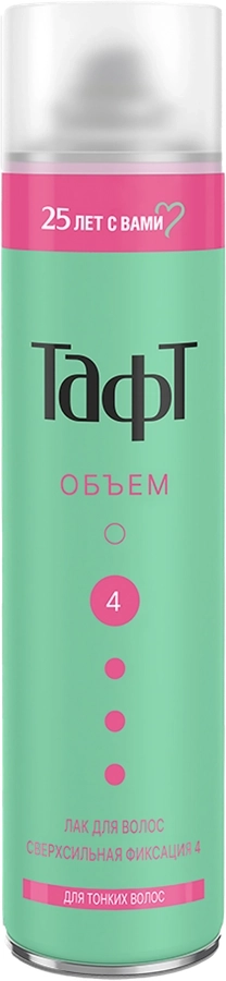 Лак для тонких волос ТАФТ Объем, сверхсильная фиксация 4 — объем и фиксация для тонких волос.