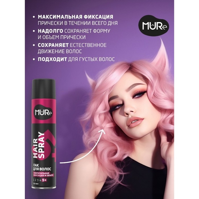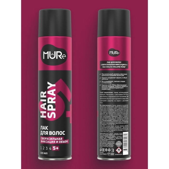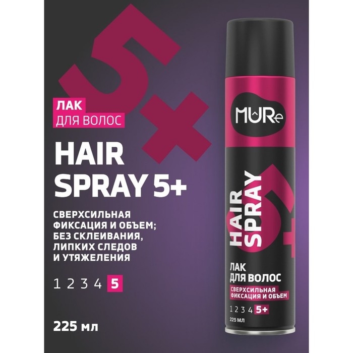 Лак для волос MURE Сверхсильная фиксация 5+ , 225 мл