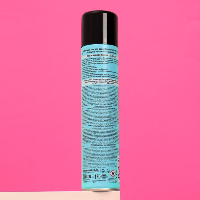 Невесомый лак для волос Прелесть Professional Invisiwear Мега объем незаметен на волосах, легко распыляется и хорошо фиксирует прическу в течение всего дня, обеспечивая вам головокружительный объем даже при неблагоприятных погодных условиях и после шапки.