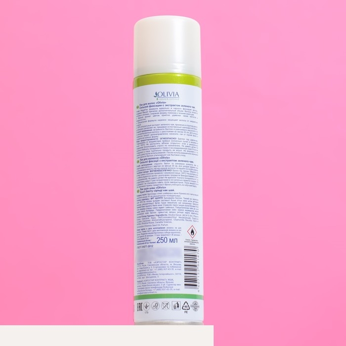 Лак для волос сильной фиксации серии «Olivia» с экстрактом зеленого чая, 250 мл