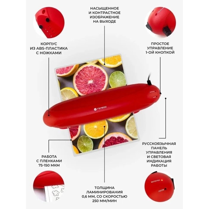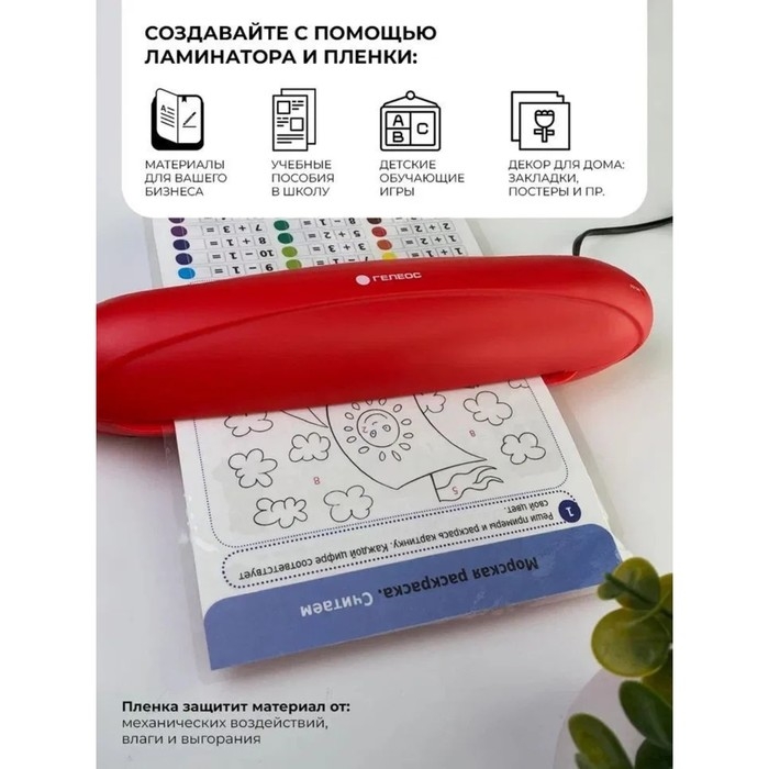 Ламинатор A4 75-150 мкм, 2 вала, скорость 25 см/мин, Гелеос Радуга, красный "ЛМА4РК"