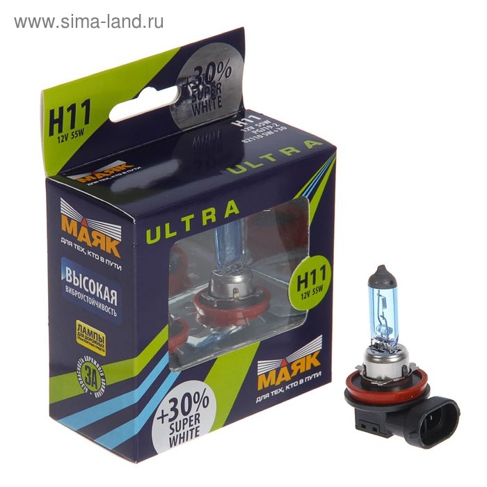 Лампа автомобильная Маяк УЛЬТРА, +30%, H11, 12 В, 55 Вт, набор 2 шт