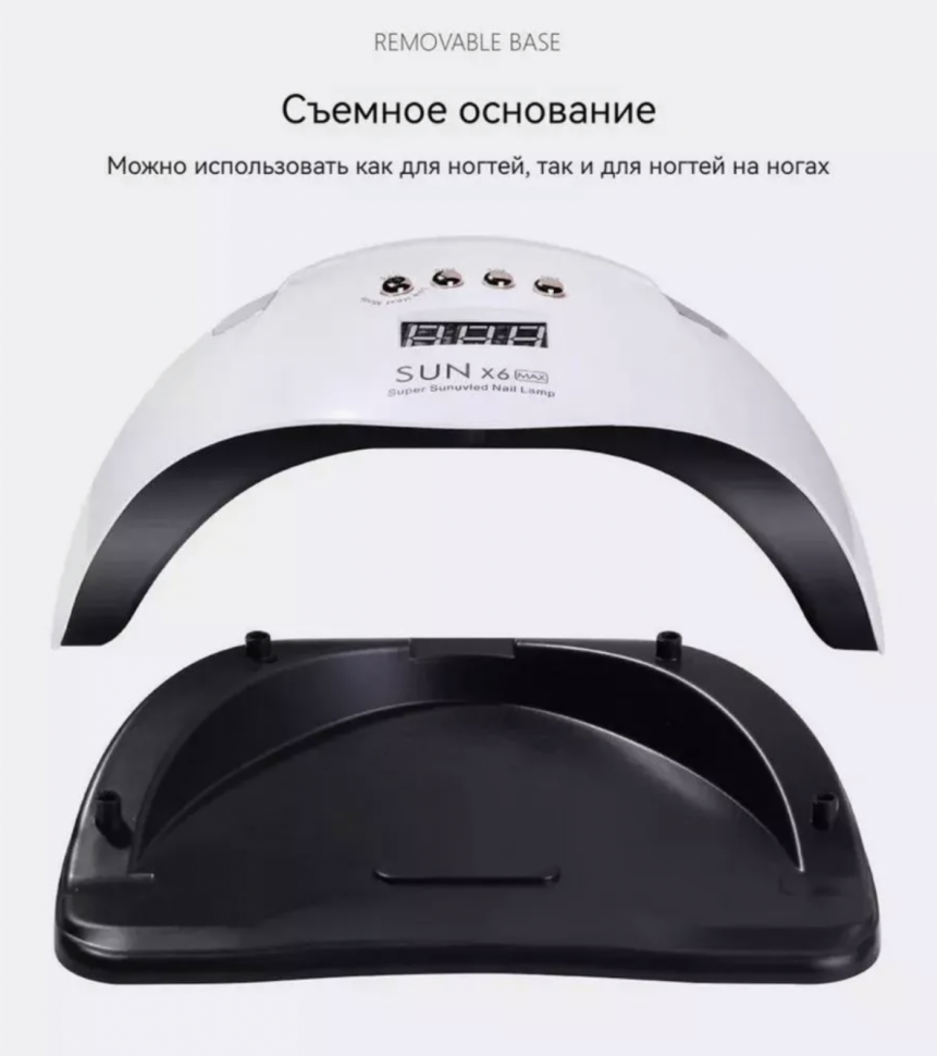 Ультрафиолетовая лампа для педикюра и маникюра Sun X6 MAX мощная 220 Вт с 45 светодиодами и новой технологией двойного источника света UV и LED лед имеет подставку для телефона и обеспечивает равномерную сушку ногтей.Благодаря двойному диапазону излучения обеспечивает быстрое и равномерное просушивание любого покрытия. Данный тип аппарата для ногтей имеет режим низкого нагрева для отсутствия жжения у кожи. Лед уф лампы для ногтей оснащены таймером на 10 30 60 и 90 секунд для автоматического использования датчиком движения для автоматической активация и сенсорными кнопками для ручной активации. Дополнительно sunuv сенсорная лампа настольная для маникюра оборудована таймером и функцией изменения мощности Low Heat Mode и Double Power благодаря чему обычная сушка ногтей становится более комфортной в работе с большей скоростью и максимально высоким качеством полимеризации покрытий в том числе для сложного наращивания. Лампа для маникюра профессиональная мощная обеспечивает равномерный свет что позволяет проводить процедуры по увеличению ногтей без каких-либо проблем. Съёмное дно лед лампы для гель лака сделает процесс маникюра и педикюра более быстрым и комфортным. Универсальная сушка для ногтей имеет несколько настроек времени что делает ее очень удобной в использовании, она станет незаменимым помощником мастера маникюра. В ней можно сушить ногти после обработки или удаления кутикулы любом способом классическим и аппаратным. Благодаря простоте и автоматизации такую сушилку для ногтей можно легко использовать дома. Вы сможете сушить в ней гелевые и лаковые покрытия, базу и топ (базовое и топовое покрытие beautydust ) декоративное косметическое цветное покрытие, акриловое 3д моделирование, маникюр beautydust педикюр beautydust и закреплять любой дизайн ногтей.Товары в категории все для маникюра и укрепления ногтей оригинал бренд Sun будь то лампа для маникюра 54 вт или лампа для маникюра 120, one plus 54w, sunuv 48w гарантируют безупречный и стойкий маникюр.