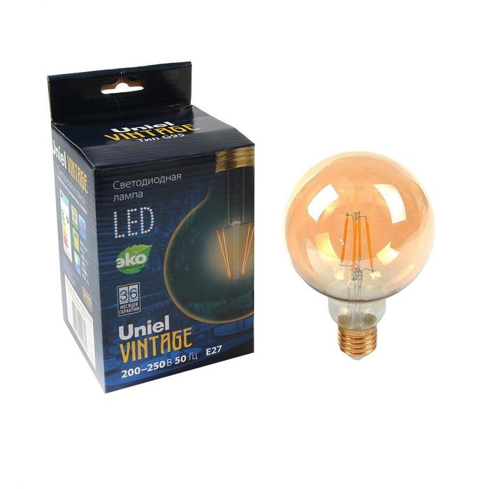 Лампа светодиодная Uniel Vintage, G95, E27, 6 Вт, 230 В, шар, золотистая колба