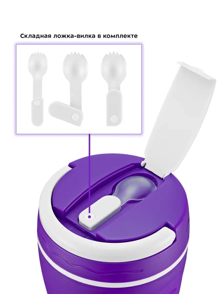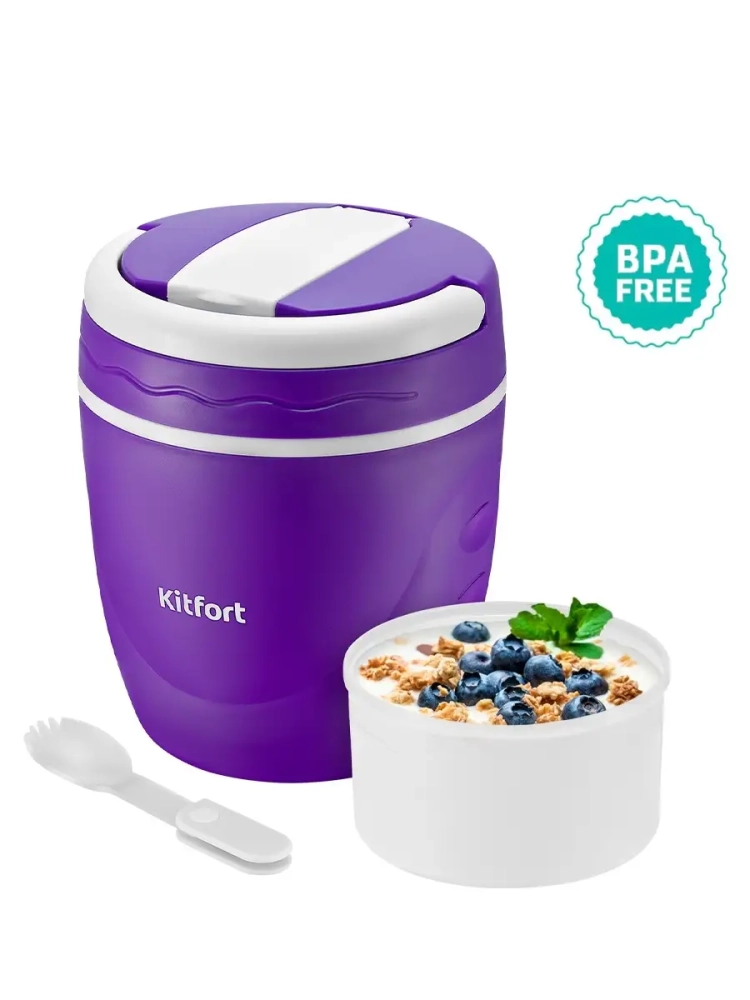 Ланч-бокс Kitfort KT-1217 позволяет вам взять блюда с собой, куда бы вы ни собирались. Благодаря двойным стенкам ланч-бокс сохранит температуру и вкус ваших блюд, которые вы берете с собой в дорогу и на пикник, на работу и в школу. Благодаря складной ручке ланч-бокс удобно переносить. Складная ложка-вилка размещается в крышке ланч-бокса и подходит для любого блюда благодаря своей универсальной конструкции. Внутри ланч-бокса есть специальный контейнер-вставка с крышкой для снеков, что очень удобно при необходимости взять с собой разные блюда или основное блюдо и небольшой перекус. Крышка ланч-бокса закручивается на резьбу, что предотвращает случайное открывание в дороге. Ланч-бокс Китфорт KT-1217 подходит только для твердой или сухой пищи и не предотвращает протекание. Емкость ланч-бокса - 1 литр, что позволяет взять с собой порцию для 1-2 человек. Ланч-бокс изготовлен из полипропилена и не содержит бисфенол А (BPA-free), что делает ланч-бокс легким и безопасным для здоровья.