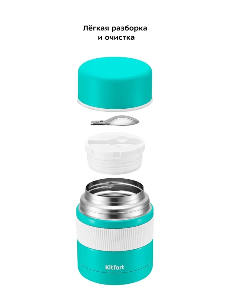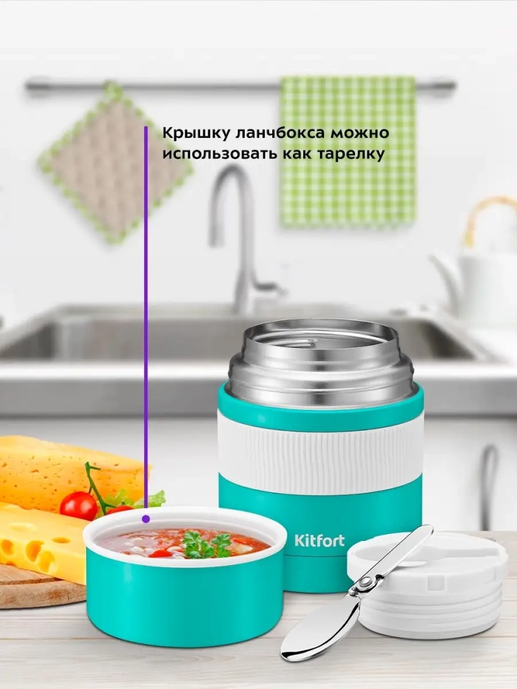 Благодаря ланч-боксу Kitfort KT-1218 вы можете взять еду с собой, куда бы вы ни собирались. Двойные стенки ланч-бокса помогают сохранять температуру и вкус ваших блюд, которые вы берете с собой в дорогу и на пикник, на работу и в школу. Ланч-бокс Китфорт KT-1218 сохраняет температуру до 10-12 часов. Внутри ланч-бокса есть пробка с уплотнителем, которая позволяет дольше сохранять температуру и закрывать ланч-бокс максимально плотно. Силиконовый уплотнитель на пробке защищает от протекания. Складная ложка размещается в специальном углублении в пробке ланч-бокса. Крышку ланч-бокса можно использовать как чашку или тарелку. Ланч-бокс емкостью 500 мл рассчитан на порцию для одного человека. Ланч-бокс и складная ложка выполнены из нержавеющей стали. Пробка и внутренняя часть крышки ланч-бокса изготовлены из полипропилена и не содержат бисфенол А. На корпусе ланч-бокса расположена силиконовая вставка, защищающая ваши руки от ожогов и позволяющая легко удерживать ланч-бокс.