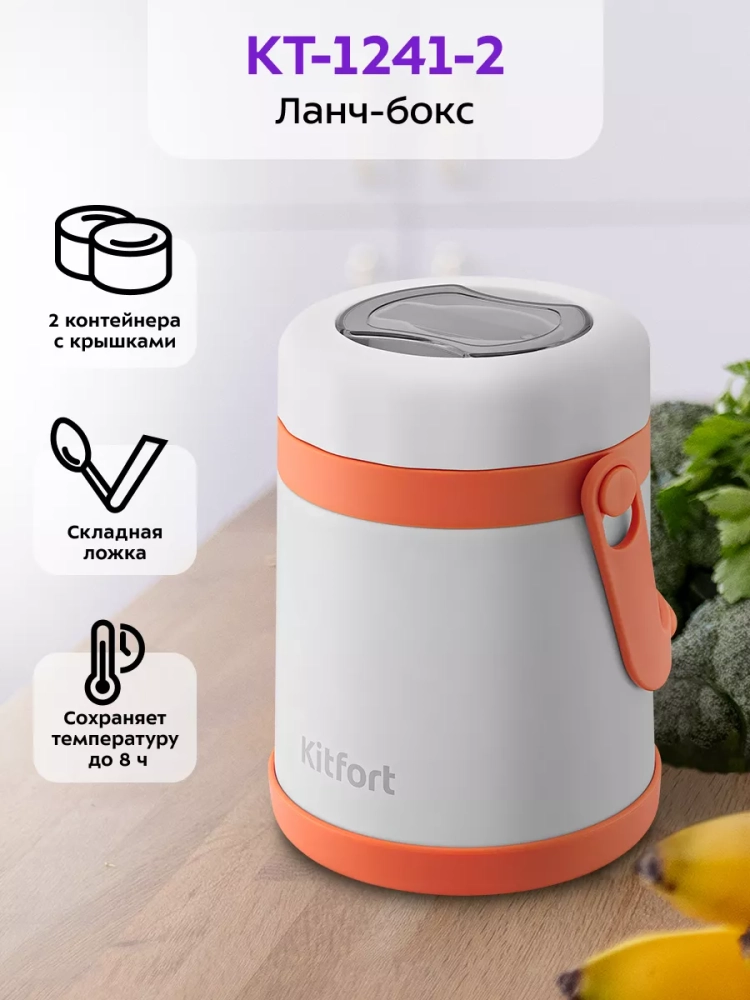 Благодаря ланч-боксу Kitfort KT-1241 вы можете взять еду с собой, куда бы вы ни собирались. Конструкция ланч-бокса помогает сохранять температуру и вкус ваших блюд, которые вы берете с собой в дорогу и на пикник, на работу и в школу. Ланч-бокс может сохранять температуру содержимого до 8 часов.
